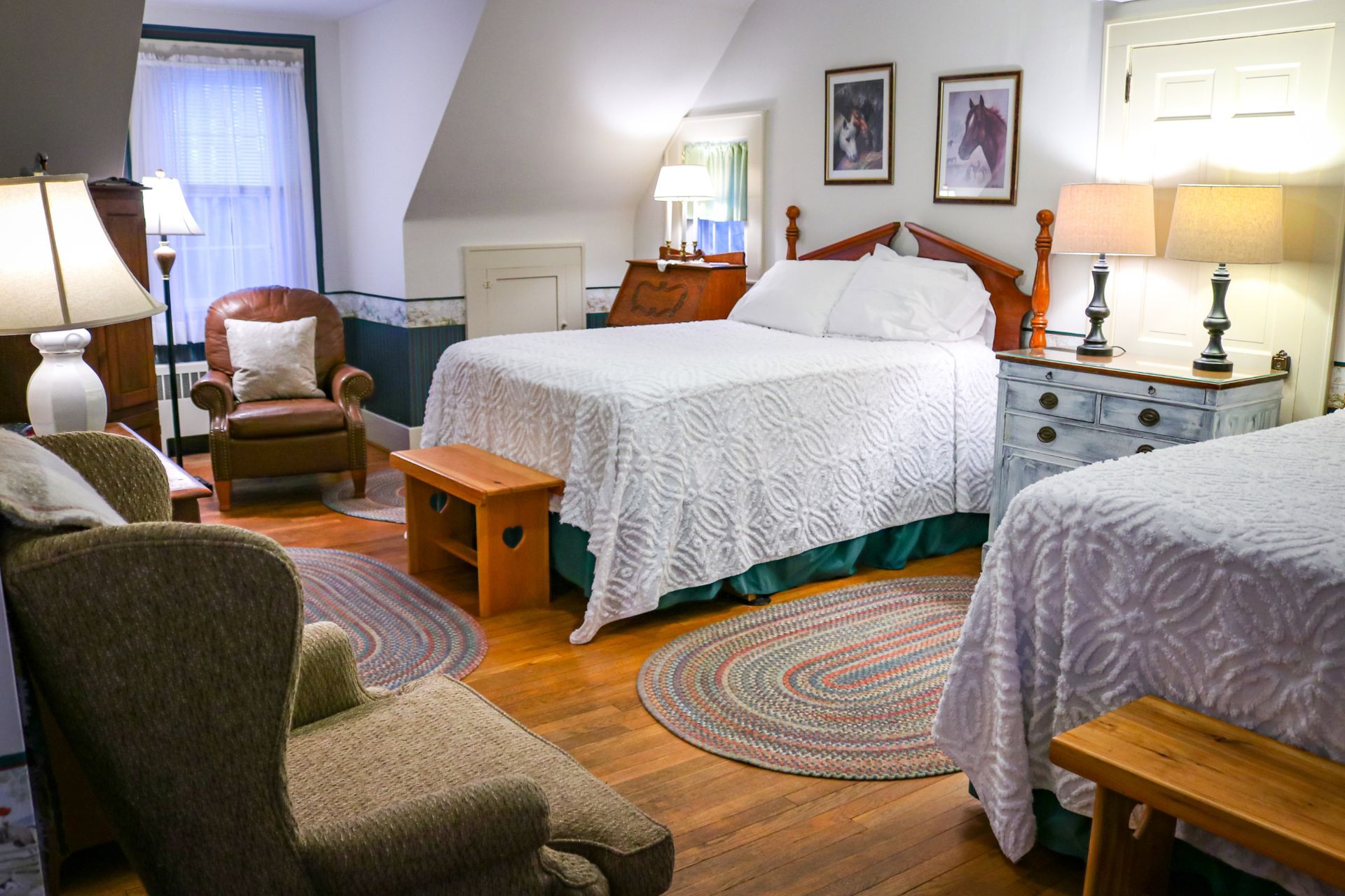 Located on the second floor, this room includes two queen-sized beds, a private bathroom and a much larger floor space.