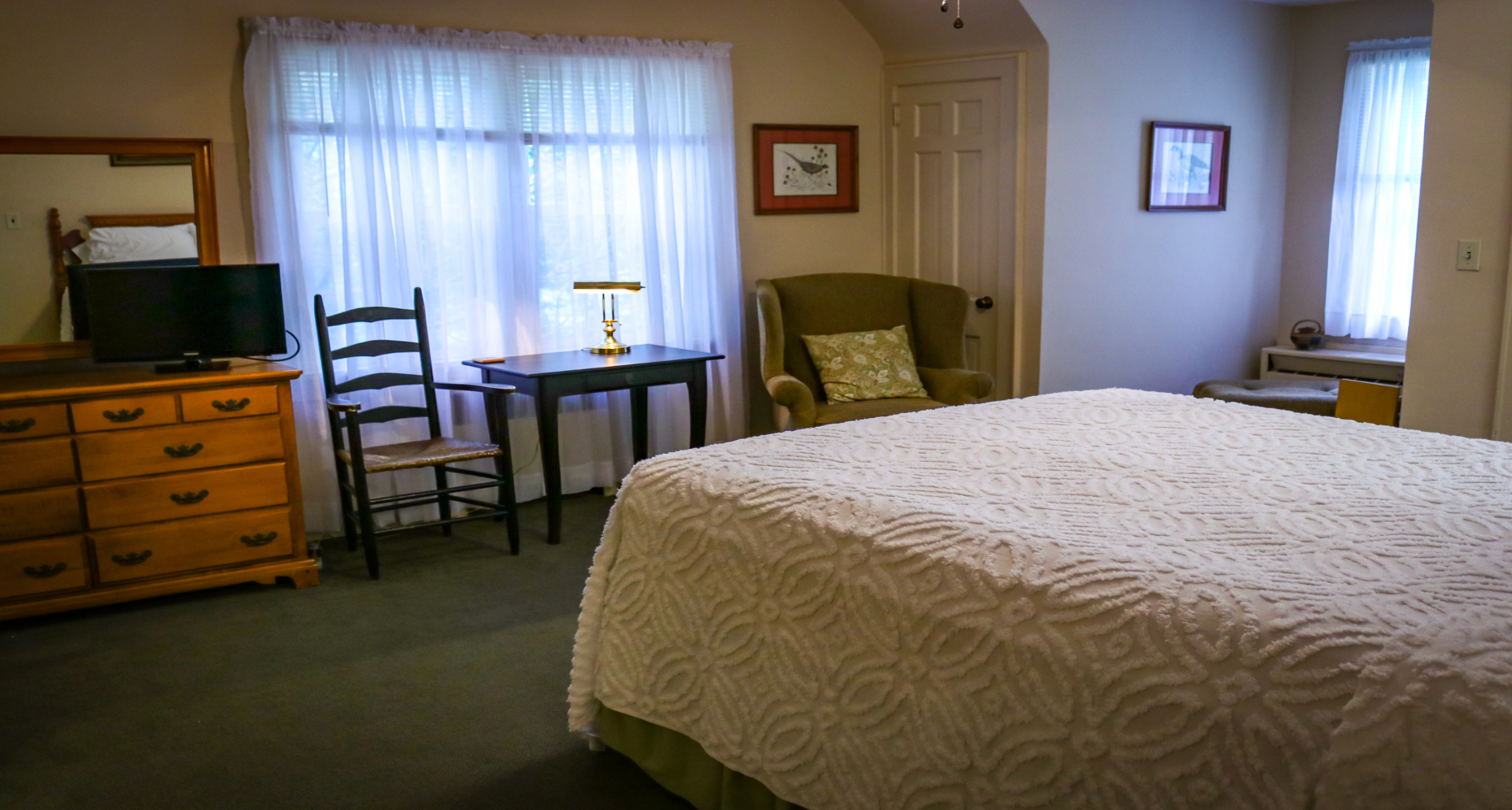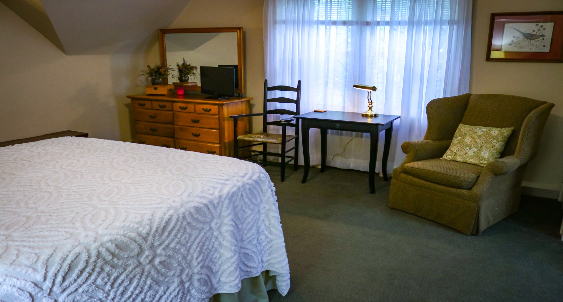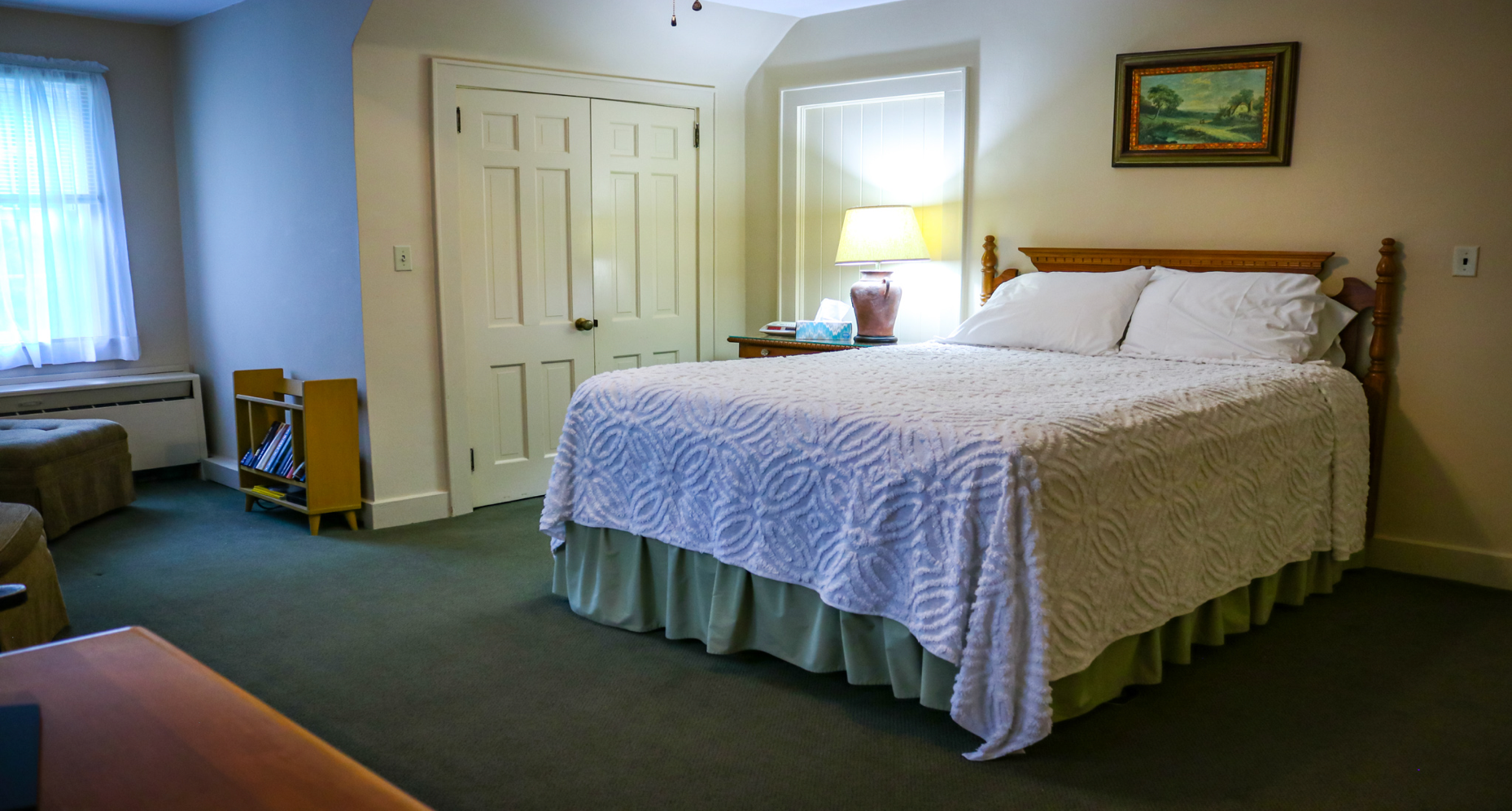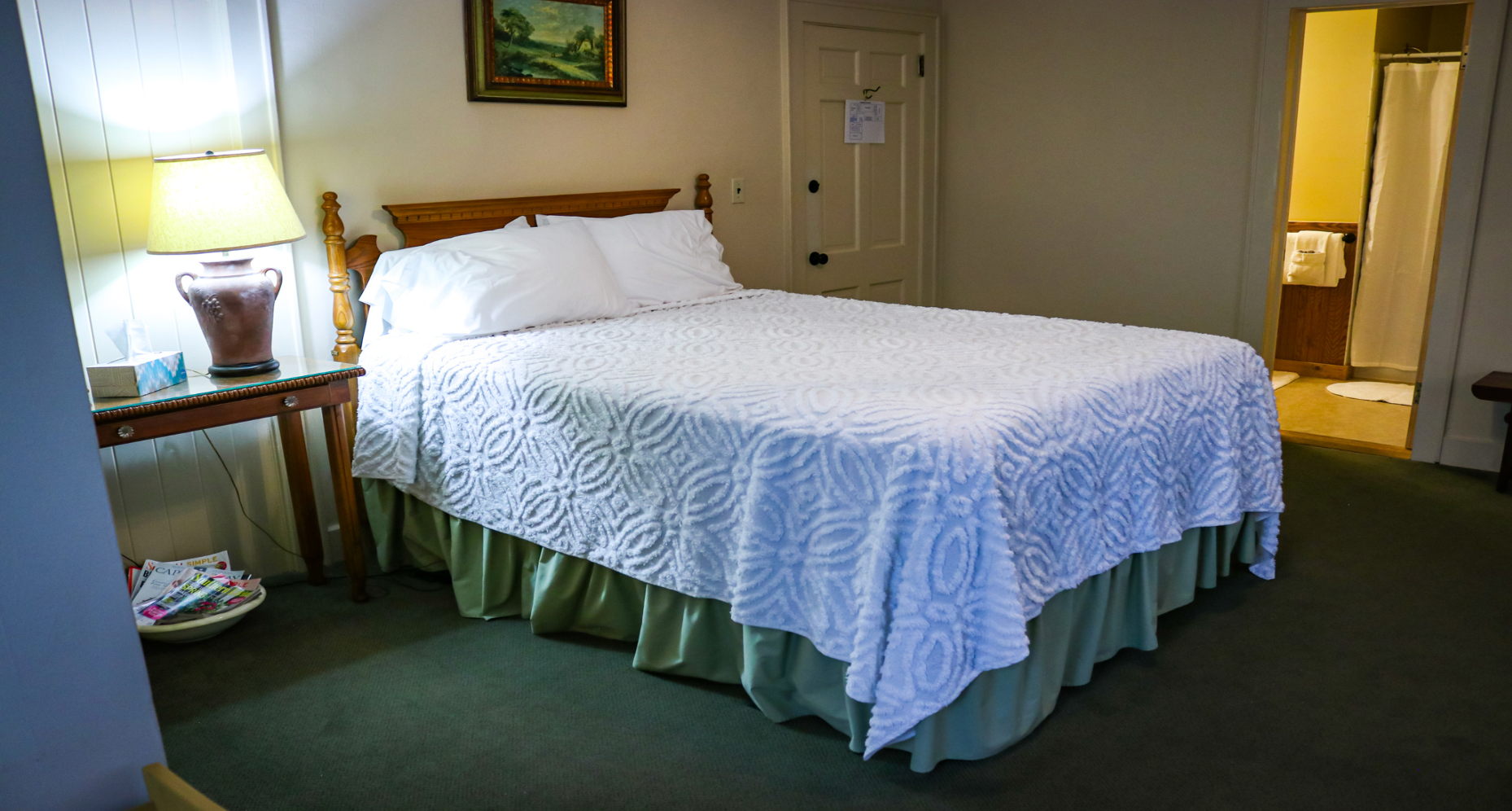 Located on the second floor, this room includes a queen-sized bed, private bath and beautiful view of the surrounding area.